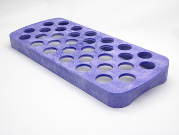 Accommodates 32 collets. Innovative design with an inclination of 4.5 degrees that deflects light for easy reading. Fits over any work station or flat surface. Sturdy Styrene Plastic Material supports up to 100Lbs. Purple Colored for an excellent tool contrast.